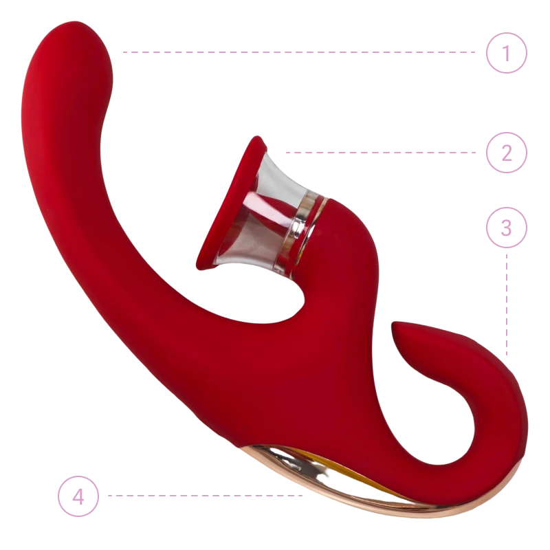 "Combining clitoral sucking & licking and powerful G-spot vibration, the unique G-shape design targets both areas for precise stimulation."
